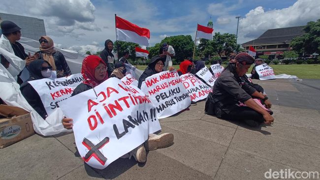 Pantauan detikJateng, massa ini membawa poster bertuliskan 'dorong DPR gunakan hak angket, tolak pemilu curang'. Mereka juga membentangkan kain kafan putih dan melantunkan puji-pujian, doa, dan tembang Jawa dengan duduk sebagai bentuk tapa berjemur.