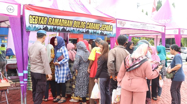 Kepolisian Resor (Polres) Jepara menggelar bazar pasar murah untuk membantu meringankan beban ekonomi masyarakat jelang bulan suci Ramadan. Ribuan paket sembako pun ludes diburu warga.