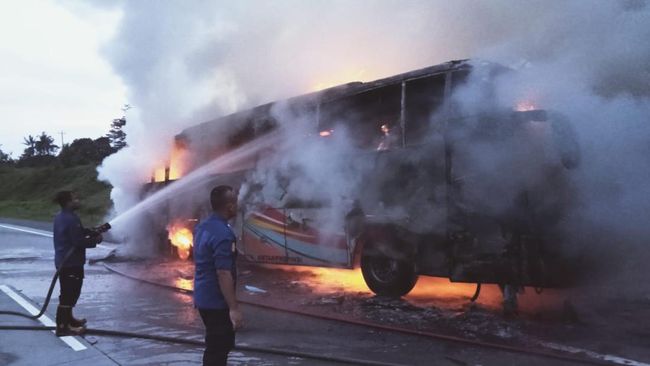 "Dua unit Damkar kami kerahkan ke lokasi untuk memadamkan api yang membakar bus tersebut," ujar Sulistiyono.