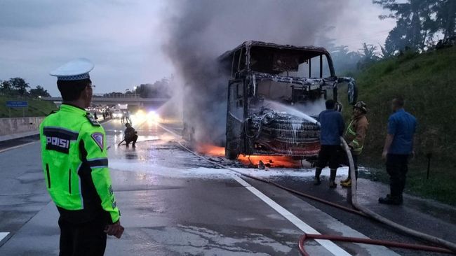 Sesampainya di TKP, lanjut dia, sopir mendengar suara ledakan di bagian mesin bus. Kemudian pengemudi menepikan bus. Setelah berhenti, kru bus mengecek dan termyata sudah terbakar.