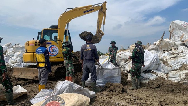 "Pangdam IV/Diponegoro Mayjen TNI Dedi Suryadi turun langsung ke lokasi untuk melihat lokasi serta langsung meninjau progres pekerjaan pembuatan tanggul," kata Danyonzipur 4/TK Mayor Czi Deka Ary Wijanarko dalam keterangannya, Selasa (19/3/2024).