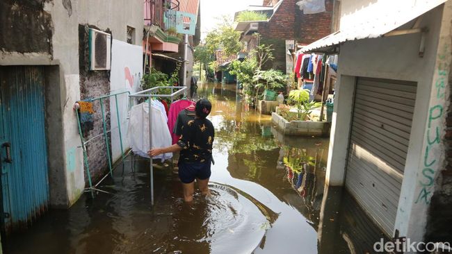 Pantauan detikJateng di lokasi, Rabu (20/3), banjir masih merendam permukiman Dukuh Tanggulangin. Ketinggian air berkisar 80 sentimeter hingga 1 meter lebih. Diketahui, Desa Jati Wetan tepat di pinggir Sungai Wulan.
