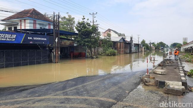 Pantauan detikJateng di lokasi, genangan banjir masih merendam ruas jalan Pantura Karanganyar pukul 08.30 WIB. Genangan banjir di ruas jalan tinggal 30 sentimeter.