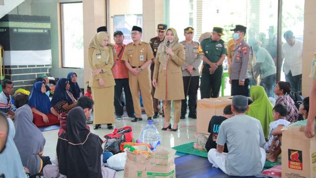 Bantu korban banjir Demak, Bupati Klaten, Sri Mulyani serahkan bantuan Klaten Peduli Demak berupa uang tunai hingga keperluan logistik. Bantuan ini diberikan secara langsung kepada Bupati Demak, Esti'anah.