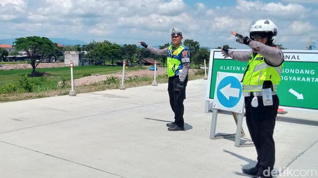 Pantauan detikJateng, personel Sat Lantas Polres Klaten melakukan buka tutup di arah exit tol Kuncen dan Ngawen. Rambu dan traffic con di lokasi untuk pengalihan arus telah dipasang.