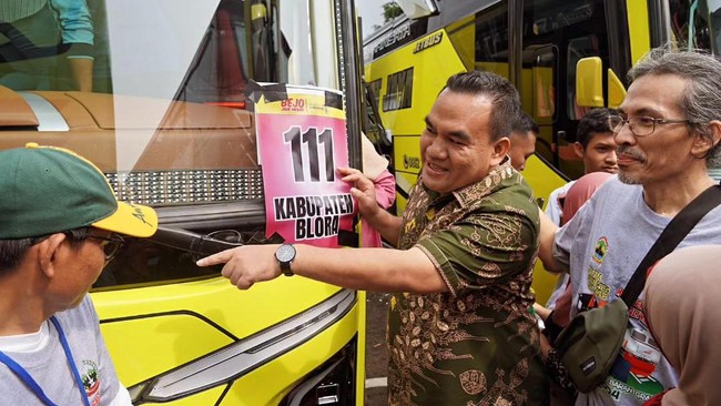 "Dari Pemkab menyiapkan tiga bus pariwisata dari PO Bus Mekarsari Blora, dengan nomor urut mudik 111, 112, dan 113. Kapasitas penumpang 150 orang full. Kondisi busnya sangat bagus, interiornya baru. Kami jamin penumpang akan terasa nyaman. Semoga program ini tahun depan bisa kita lanjutkan dan kita tingkatkan. Masih banyak peminatnya," jelasnya.