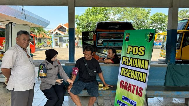 Polres Jepara memberikan layanan pemeriksaan kesehatan gratis bagi pemudik saat mudik Lebaran. Hal ini untuk memastikan kesehatan pemudik mulai dari sopir bus hingga warga yang hendak melakukan perjalanan jauh.