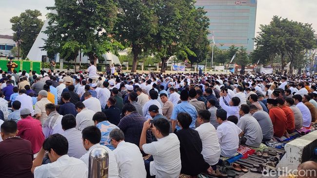 Pantauan detikJateng, Rabu (10/4/2024), salat Idul Fitri di Lapangan Simpang Lima Semarang dimulai pukul 06.30 WIB. Salat Idul Fitri dipimpin Imam Masjid Agung Jawa Tengah KH Ulil Abshar dengan khatib Rektor UIN Walisongo Nizal Ali.
