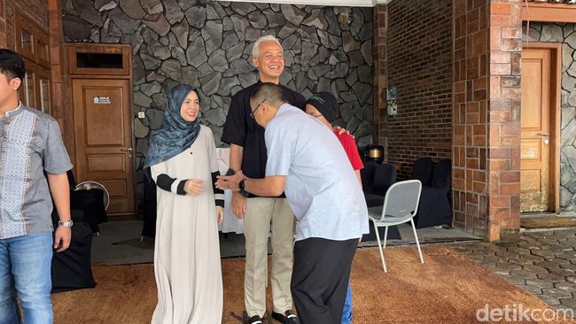 Calon presiden (capres) nomor urut 03, Ganjar Pranowo menggelar open house di kampung halamannya di Tawangmangu, Karanganyar. Ganjar ditemani sang istri Siti Atikoh dan putra semata wayangnya Alam Ganjar.