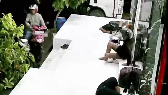 Pelaku kemudian duduk, lalu menggeser duduknya mendekati korban yang tidur. Pelaku kemudian mengambil ponsel korban dan kabur berboncengan naik motor.