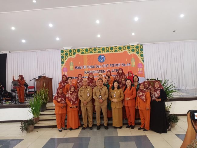 Sekretaris Daerah (Sekda) Kabupaten Klaten Jajang Prihono menghadiri halalbihalal dan Hari Ulang Tahun (HUT) Persatuan Guru Republik Indonesia (PGRI) TK Pertiwi (TKP) ke-44 Kabupaten Klaten. Ia menekankan kepada ratusan guru agar jangan sampai kalah dengan teknologi.