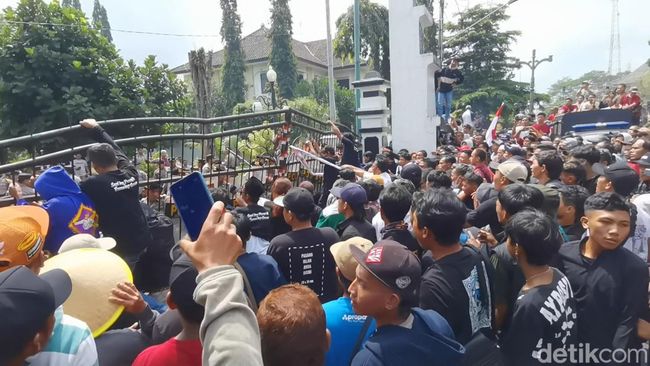 "Untuk massa tadi ada yang merobohkan gerbang pendopo. Sehingga kita melakukan upaya tegas dan terukur. Ini sesuai dengan peraturan Kapolri tentang pengendalian massa," ujarnya.