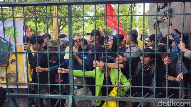 Polisi melarang mahasiswa masuk dengan alasan tak ada aktivitas di dalam area perkantoran tersebut. Sedangkan mahasiswa beralasan hendak membacakan pernyataan sikap di sana.