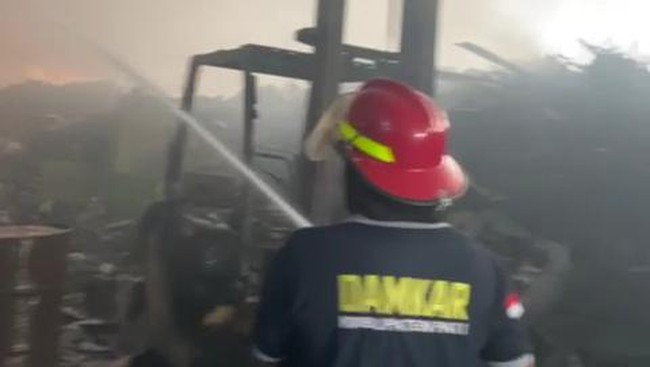 Seperti video yang diterima detikJateng tampak petugas pemadam kebakaran berjibaku memadamkan api. Terlihat kobaran api begitu besar.