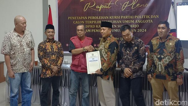 "Nomor 6, Ngadiyanto. Suara sah 6.256, nomor urut dalam DCT 4, dari partai PDI Perjuangan," lanjut Bambang, saat membacakan penetapan anggota DPRD Sukoharjo 2024 dari Dapil 5.