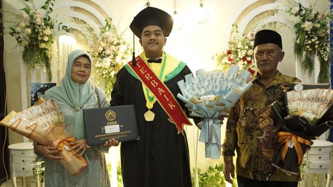 "Sebelumnya saya belum tahu. Sebelum wisuda itu bapak bilang mau berjalan, saya pikir hanya bercanda, ternyata sungguhan. Saat kakak-kakak saya wisuda tidak melakukan itu," kata Wakhid.