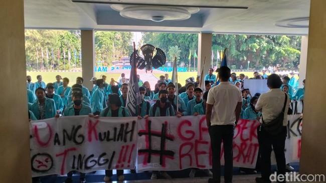 Ada 8 tuntutan yang dilayangkan oleh mahasiswa kepada rektorat. Salah satunya untuk menghapus golongan 9 UKT.