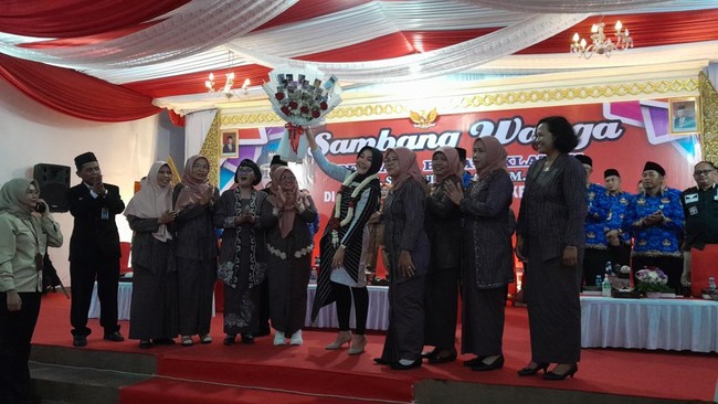 Sri Mulyani pun sempat memberikan bantuan kepada 10 perwakilan penerima bantuan. Mulai dari sembako, beasiswa, kursi roda, jambanisasi senilai Rp 5 juta, hingga alat pertanian.