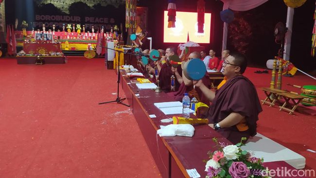 "Ada, ada (doa khusus Palestina). Itu, termasuk di dalam rangkaian Nyingma Monlam Chenmo Indonesia. Untuk perdamaian dan kesejahteraan seluruh dunia," kata Lama di Taman Aksobya Candi Borobudur, Senin (20/5/2024).