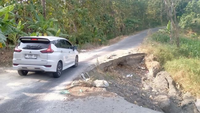 Dalam video dan foto yang diterima detikJateng dari warga, akses jalan alternatif antarkabupaten itu tampak berongga. Longsor memakan separuh jalan meski kendaraan masih bisa melintas secara bergantian.