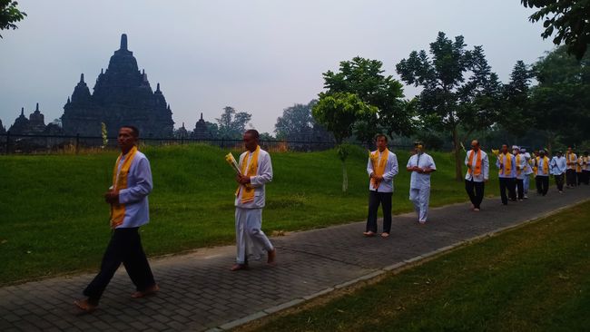 "Ada dupa sebagai simbol keharuman dari perbuatan kebajikan, bunga sebagai simbol ketidakkekalan dalam kehidupan, dan buah sebagai simbol atau makna hasil perbuatan baik," kata Katman kepada awak media di Candi Sewu, Kamis (23/5/2024).