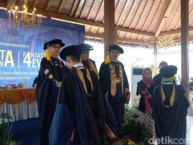 "Tiga di antaranya diterima di perguruan tinggi luar negeri, dengan beasiswa Indonesia Maju dari Pemerintah Republik Indonesia," kata Usdiyanto saat memberikan pidato sambutan wisuda ke-4 SMA Unggulan CT ARSA Foundation Sukoharjo, Sabtu (25/5/2024).