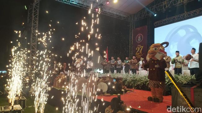 Pesta kembang api dan bersalawat mewarnai peluncuran maskot serta jingle Pilkada Magelang 2024. Peluncuran ini dihadiri puluhan ribu orang.