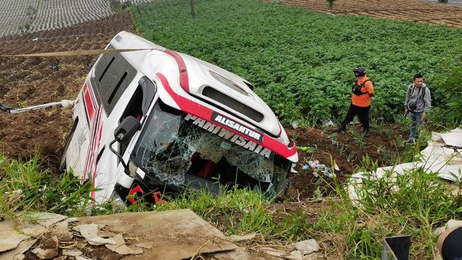 Perihal penyebab kecelakaan tunggal ini, diduga akibat rem blong. Saat kendaraan melaju di arah turunan yang menikung, kendaraan tersebut terguling ke kebun kentang.
