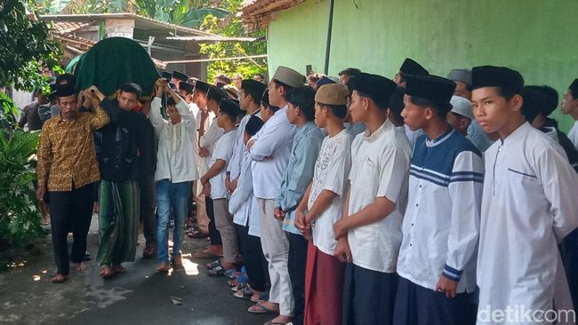 Jenazah santri itu dikuburkan pada pukul 10.15 WIB usai disalatkan ratusan teman dan warga. Jenazah dibawa ke permakaman umum di depan rumahnya yang hanya dipisahkan gang setapak.