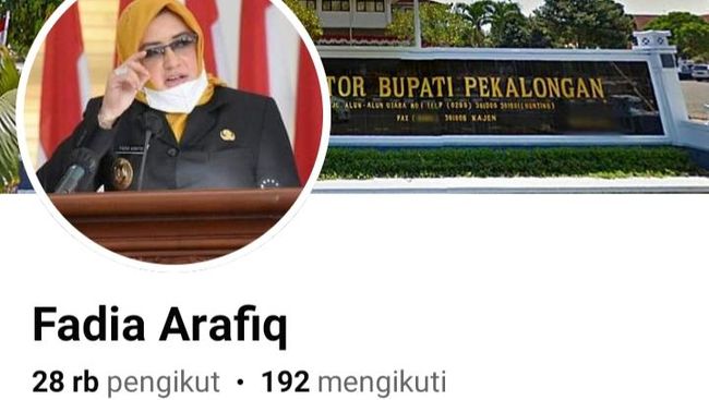 Akun FB dengan nama akun Fadia Arafiq dan foto profil wajah Bupati Pekalongan ini sebelumnya digunakan oleh admin untuk memposting kegiatan Bupati Pekalongan. Akun ini terlihat memiliki puluhan ribu pengikut.