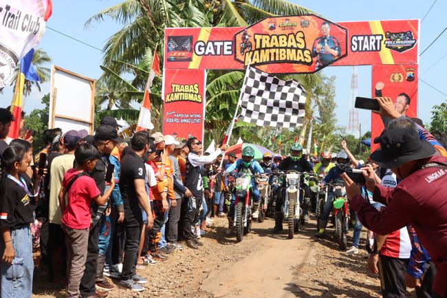 Ratusan off roader motor trail mengikuti ajang 'Trabas Kamtibmas bareng Kapolda Jateng' yang digelar di Desa Bumiharjo, Kecamatan Keling, Kabupaten Jepara. Pada kegiatan tersebut polisi juga menggelar aksi bakti sosial hingga menyumbang pembangunan masjid.