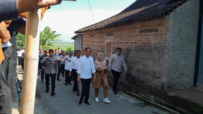 Pantauan detikJateng, Sri Mulyani, Jokowi serta jajaran hadir meninjau pompa yang berada di tepi Sungai Dengkeng, Rabu (19/6/2024). Jokowi dan Sri Mulyani juga sempat menyapa masyarakat yang berada di seberang Sungai Dengkeng.
