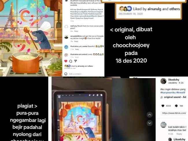 Salah satu karya yang diplagiat yaitu milik choochoojoey atau yang bernama asli Joey Chou. Karyanya yaitu ilustrasi gambar dari animasi Ratatoulli yang diunggah 18 Desember 2022 lewat Instagram. Kemudian diunggah Rico di medsosnya yang kala itu bernama @likodchy dengan dibubuhi video proses menggambar.