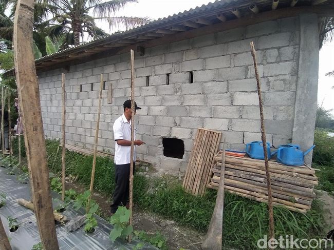 Kandang ini dibuat semi permanen dengan tembok dari batako. Kandang itu dibuat sekitar setahun lalu. Pelaku membawa kabur kambing dengan menjebol tembok dari batako di bagian belakang.