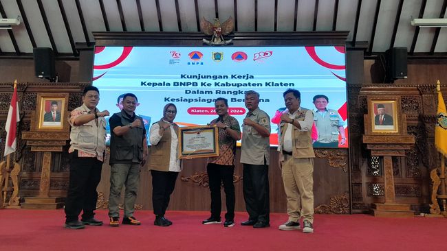 "Hari ini kita menerima kunjungan Kepala BNPB Republik Indonesia, dalam rangka memberikan bantuan, khususnya untuk mengatasi kekeringan," kata Jajang di Pendapa Setda Klaten, Jumat (28/6/2024).