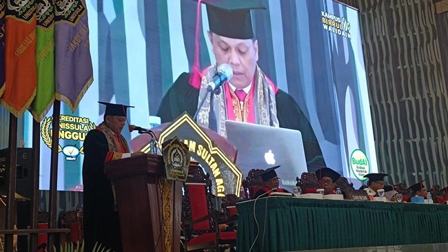 "Setelah kita mendapatkan gelar profesor kehormatan ini, ini harus memicu kita terus berkontribusi untuk memberikan ide-ide segar ide-ide yang baru untuk perkembangan dan pembangunan Indonesia. Memberikan solusi, memberikan kontribusi untuk menyelesaikan permasalahan di masyarakat," pungkasnya.