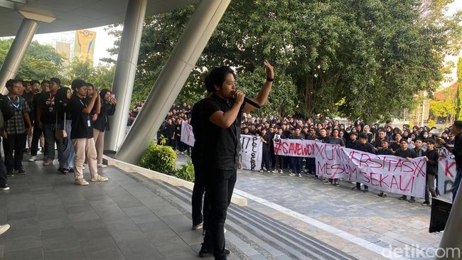 "Kita tidak peduli nama kampus kita bagus atau jelek, apabila ada pelecehan di kampus, kita harus bersuara," ungkap salah satu mahasiswa saat menyampaikan orasinya di atas pikap, Rabu (17/7/2024).