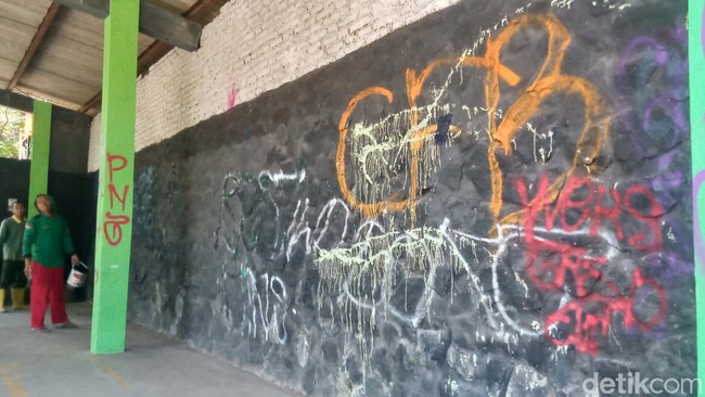"Sudah dua kali ini, dibersihkan, dicoret-coret lagi. Kalau pagi tidak mungkin, paling malam hari kejadiannya," katanya.