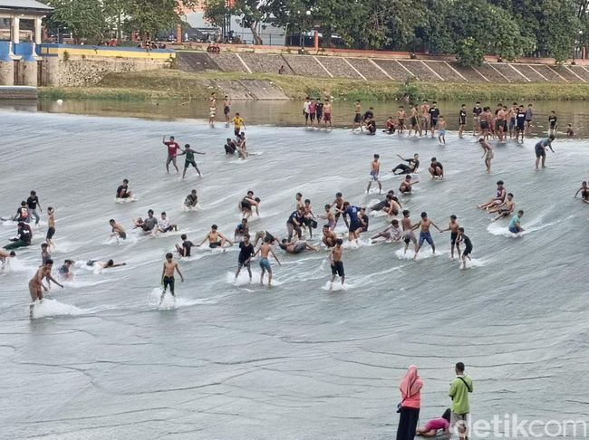 Untuk diketahui, bendung Pleret tiap sore ramai dikunjungi para remaja hingga orang dewasa. Mereka melakukan seluncuran ala surfing di mercu yang digunakan untuk turunnya air karena beda tinggi sungai.