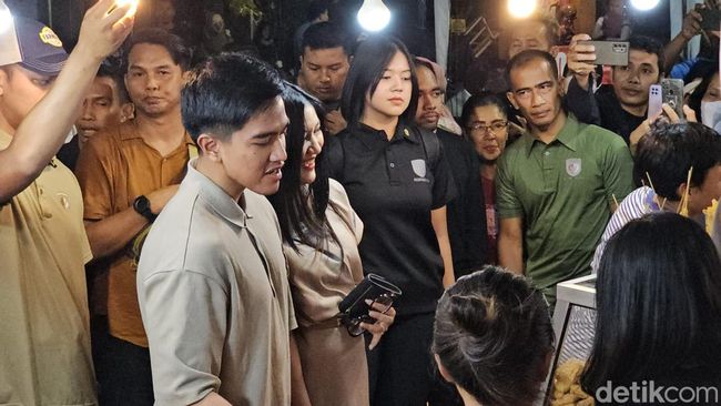 Kaesang dan Erina juga tampak menikmati stand UMKM yang ada di Night Market Ngarsopuro. Keduanya pun berjalan-jalan sambil membeli cemilan.