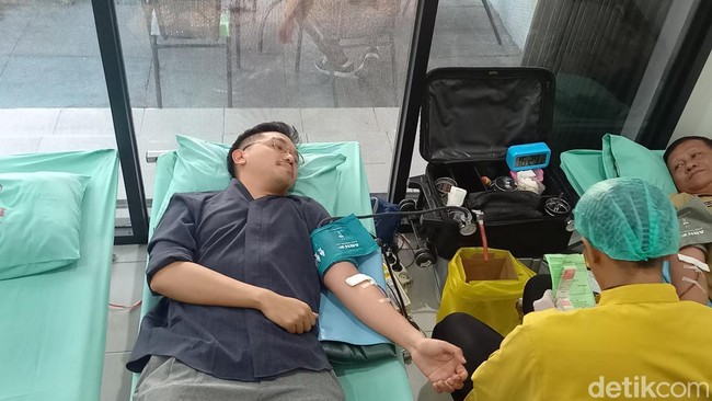Dia mengaku melakukan donor darah setahun sekali. Saat darahnya sudah mulai disedot, Bhre pun masih sempat menanggapi candaan wartawan terkait warna darahnya merah atau biru.