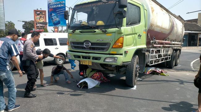 "Truk tidak bisa menguasai laju kendaraan akhirnya membentuk sepeda motor, maka terjadilah laka lantas," bebernya.