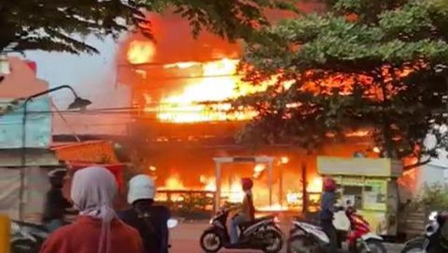 Api baru bisa sepenuhnya padam setelah petugas damkar berjibaku sekitar tiga jam. Bangunan tiga lantai tersebut pun ludes terbakar.