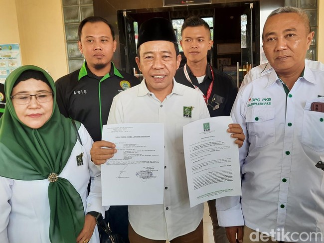 Usai mendatangi Mapolresta Pati, Rabu (7/8), rombongan DPC PKB Pati memperlihatkan surat tanda terima laporan pengaduan kepada wartawan. Dilihat detikJateng, dalam surat itu tertulis perihal laporan dugaan tindak pidana pencemaran nama baik atau fitnah melalui media elektronik yang dilakukan oleh Muhammad Lukman Edy.
