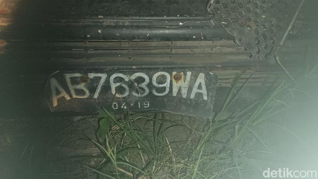 Mobil sedan tua itu memiliki pelat nomor AB 7639 WA. Dua ban depan sekaligus velg mobil itu tampak raib, kaca depan dan samping pecah, bahkan jok mobil itu hanya tersisa di bagian belakang.