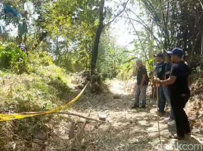 Polisi bersama warga lalu melanjutkan pencarian separuh mayat korban, dari perut hingga kaki, ke kawasan hutan Desa Wlahar.