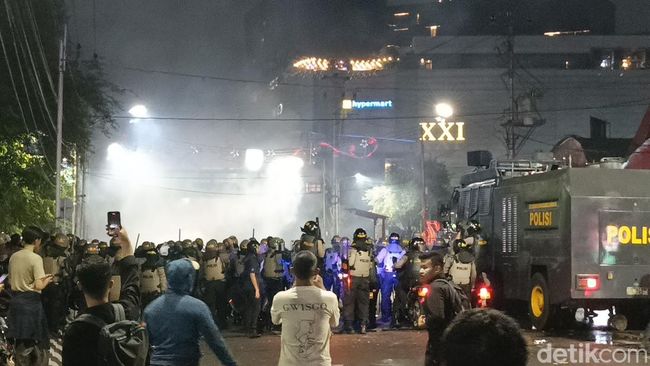 "Ya sekarang pulang dulu, besok kalau mau dateng lagi nggak apa-apa kalau belum puas," kata polisi melalui pengeras suara.