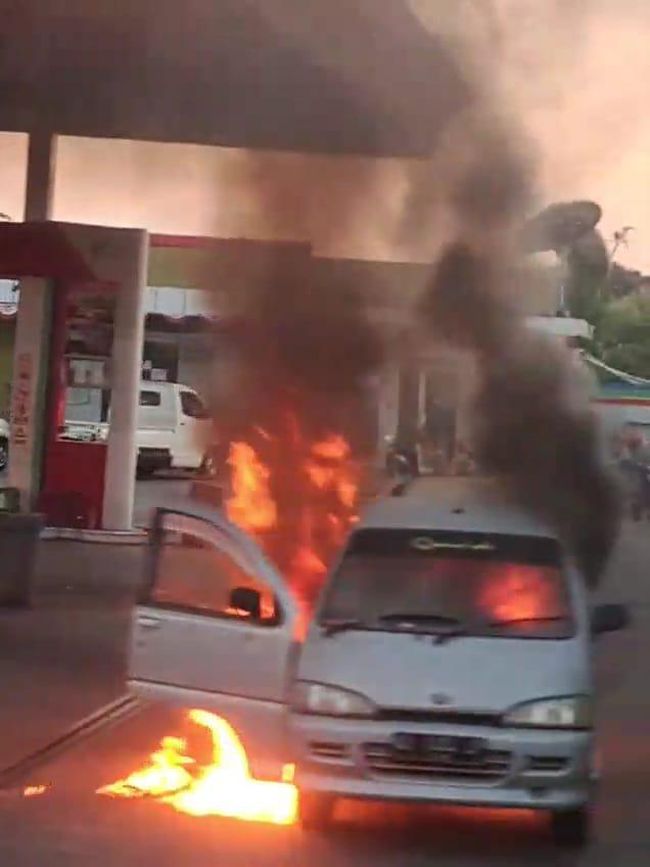 Satu unit mobil jenis Daihatsu Zebra Espass terbakar saat mengisi Bahan Bakar Minyak (BBM) di salah satu SPBU di Bejen, Kecamatan/Kabupaten Karanganyar. Api diketahui sudah padam saat pemadam kebakaran (damkar) tiba di lokasi.