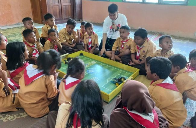 Para siswa SMA berprestasi itu terjun langsung di tengah ratusan siswa SDN 1 Soropaten dan SDN 2 Soropaten untuk memberikan materi Bahasa Inggris, Matematika, serta pengenalan robotika.