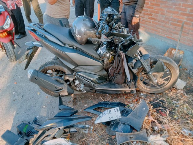 Tampak pula sepeda motor Vario nomor polisi AD 2348 AK yang ringsek. Selain itu, ditemukan juga roda truk yang copot di sekitar korban.
